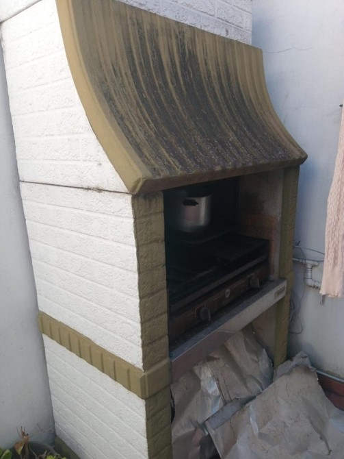 Patio con parrilla, termotanque y pileta de lavar.