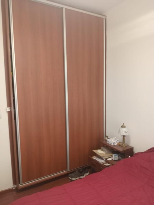 Dormitorio pisos cerámicos, placard y ventana con vista al patio.