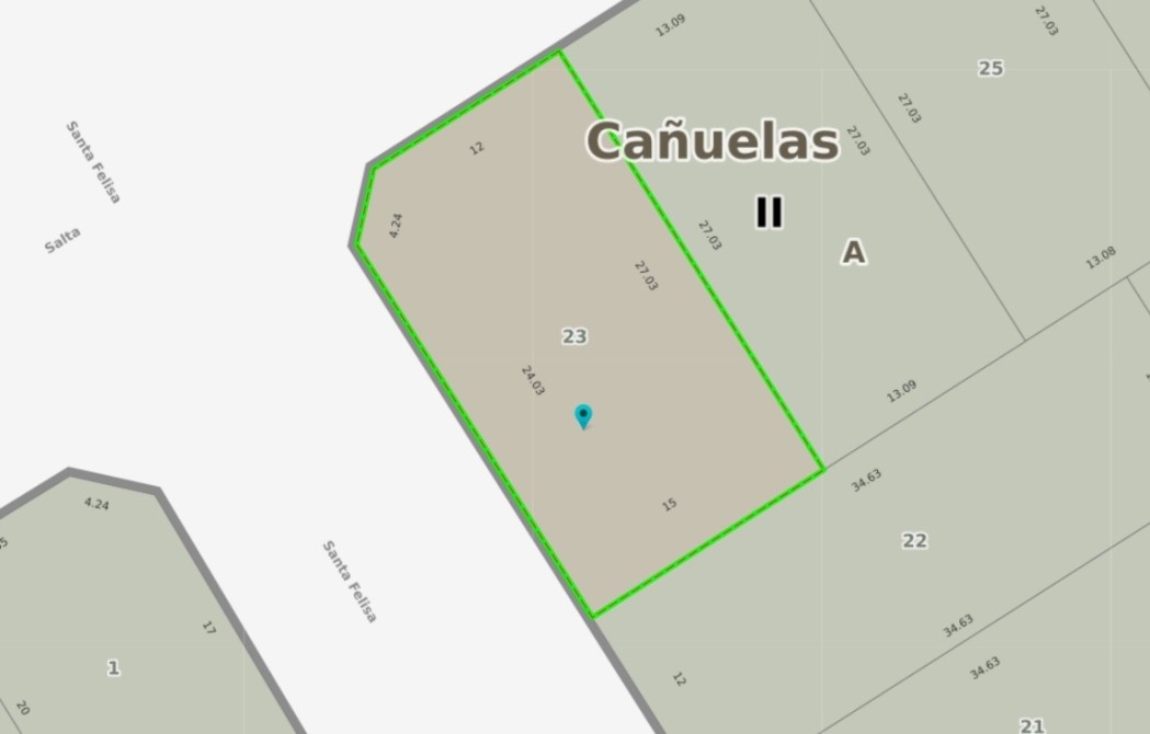 El lote está ubicado en la intersección de las calles Salta y Santa Felisa y está totalmente perimetrado y con bajada de luz conectada.