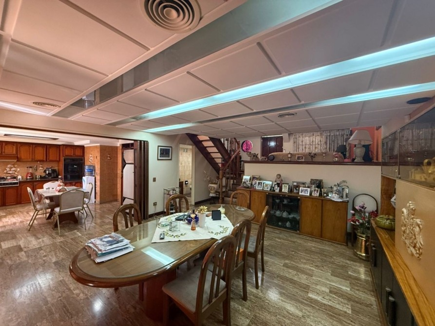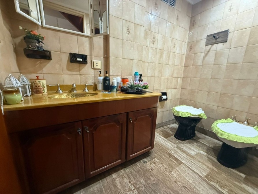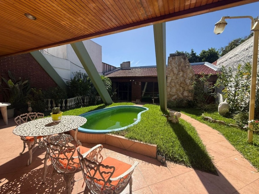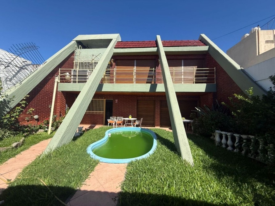 Excelente vivienda ; sobre lote de 333 m2 aproximados - definida en 2 plantas ; con detalles :  compuesta de 3 dormitorios con pisos alfombrados - 2 baños completo - cocina completa - amplio living - sala de estar con hogar , con desniveles donde amplia los espacios de distribución y accesos a los mismos  - galería - toda sus espacios cuenta con aire central y calefaccion en sus techos - cochera para 2 vehículos con portón elevadizo - cuarto de lavadero - al fondo patio con pequeña piscina y  a continuacion quincho con cocina completa y baño