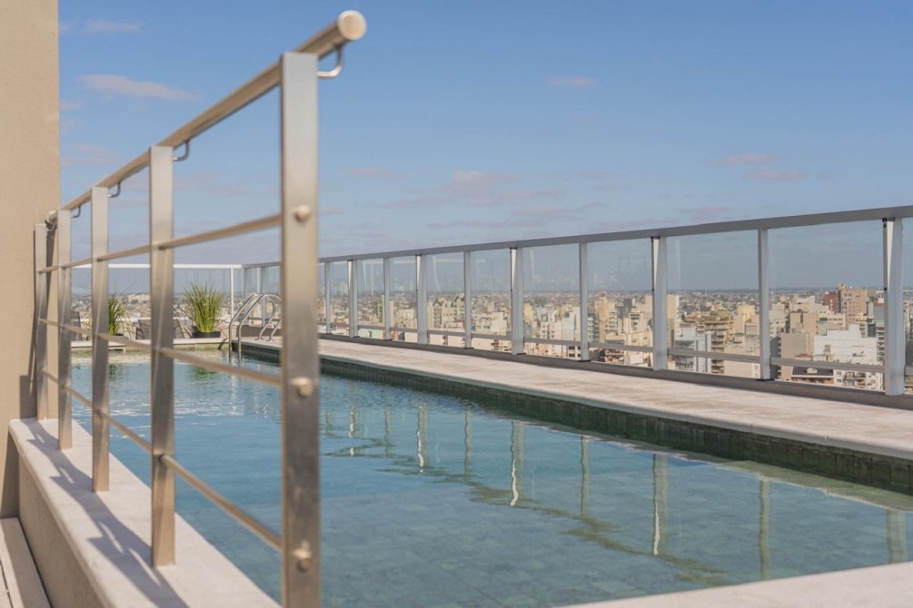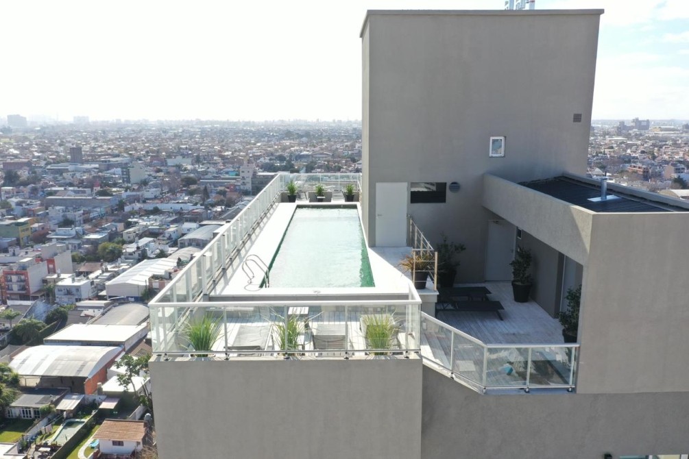 Lanus E, Sarmiento y Eva Peron: Departamento 2 ambientes contrafrente compuesto de dormitorio, living comedor, cocina integrada, baño completo, aire acondicionado frio- calor y cochera opcional. Se entrega con interiores y frente de placard. EL EDIFICIO CUENTA CON PISCINA, COWORKING, S.U.M CON PARRILLA, GIMNASIO, AGUA CALIENTE CENTRAL Y DETALLES DE CATEGORIA