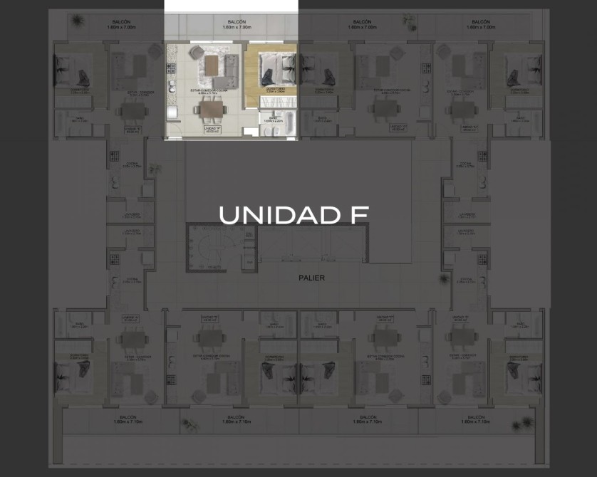 Unidad de 2 ambientes ubicada en el 7º piso, departamento 'F' al contrafrente, con una superficie de 49 m² cubiertos más balcón, en el edificio Grand Barón, emplazado en una excelente ubicación en el corazón de Las Lomitas.