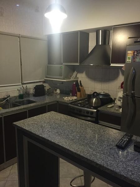 Esta propiedad es un dúplex moderno y funcional que destaca por su excelente estado de mantenimiento y una distribución inteligente en dos niveles. En la planta baja, el diseño se centra en la integración de espacios: un living-comedor luminoso con pisos de porcelanato conecta con una cocina de estilo contemporáneo, equipada con amoblamientos oscuros, mesadas de granito y una práctica barra desayunadora. El área social se completa con un toilette de recepción y una salida directa a un patio privado que incluye un sector de deck y una parrilla de ladrillo, ideal para el esparcimiento al aire libre.