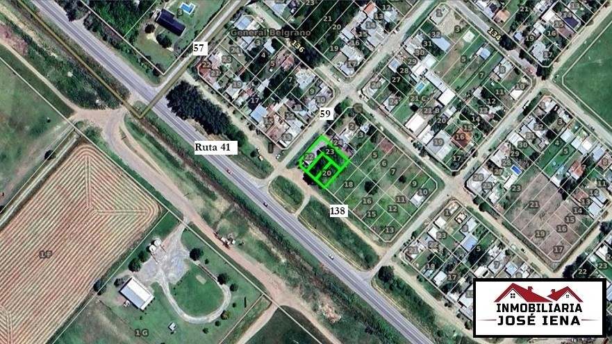 Excelente propiedad con una Superficie Total de 895 m2 con frente a Colectora de Ruta 41. Dispone de galpón de material de 8 x 24 (192 m2 Cubiertos). Con doble ingreso (Área de ventas con ingreso sobre Ruta e ingreso directo a galpón con portón sobre Calle 59. Además de otros portones con pasada de galpón a predio y directo por colectora a predio. El patio totalmente cercado con alambre y lajas.