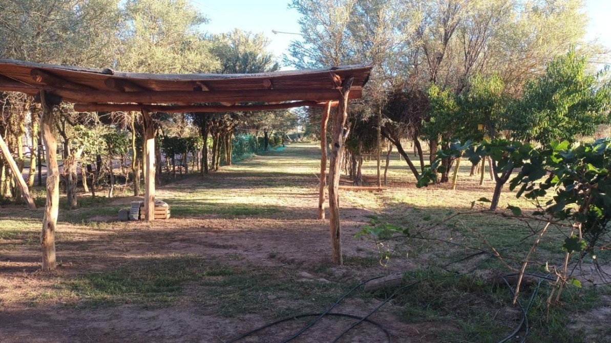 LOTE 1 DE LA MANZANA 21. Sobre calle Castro Barros, Con monte de algarrobo y chañares, parquizado, Olivos, uvas y durazno. Cuenta con una tradicional casa de adobe acondicionada con todas las comodidades. Con baño completo, cocina, depósito, pieza y galería original. Tanque cisterna de 3600 lts, con bomba sumergible que provee rigo por aspersion a la viña y callejón y alimenta el tanque de reserva de la vivienda. Cuenta también con una represa de 100.000 lts para acumular agua de riego con bomba sumergible que alimenta una red de riego y a la viña con riego por goteo. Superficie del lote 3.266 m2. Excelente parque con iluminación con refcetores de led. IDEAL PARA EMPRENDIMIENTO TURÍSTICO. U$S 40.000.