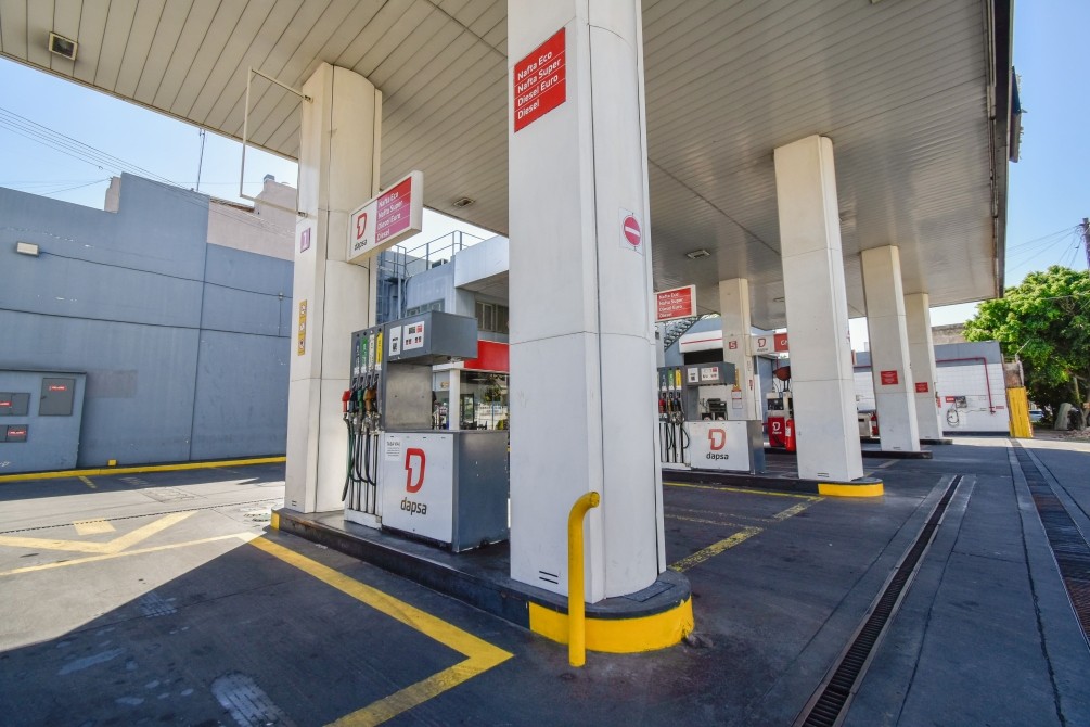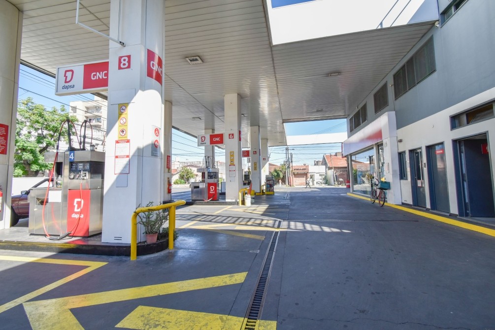 HAY 4 SURTIDORES DE NAFTA/GASOIL DOBLES (TANQUES PARA 70.000 LITROS DE COMBUSTIBLE ENTERRADO, DOBLE CAPA), 2 SURTIDORES DE GNC DOBLES.