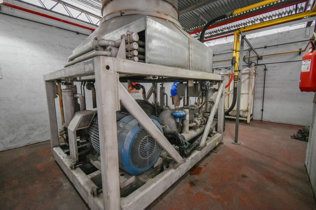 -COMPRESOR DE GNC QUE COMPRIME EL GAS (MARCA ASPRO), LA SALA DONDE ESTÁ UBICADO SE ENCUENTRA INSONORIZADA.