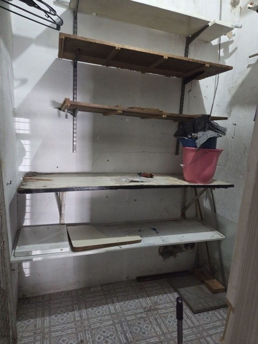 un pequeño espacio de guardado en el ante baño