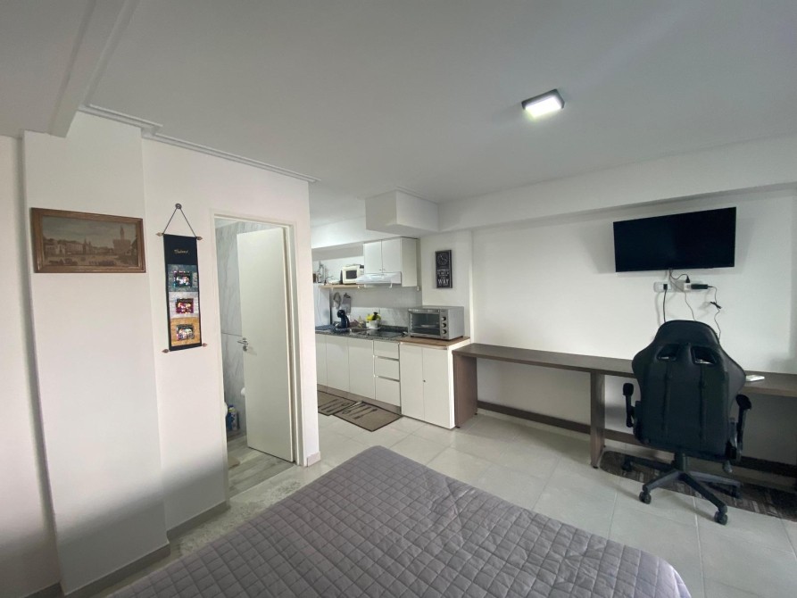 Se trata de un departamento en 2do piso, monoambiente amueblado, con balcón al frente.