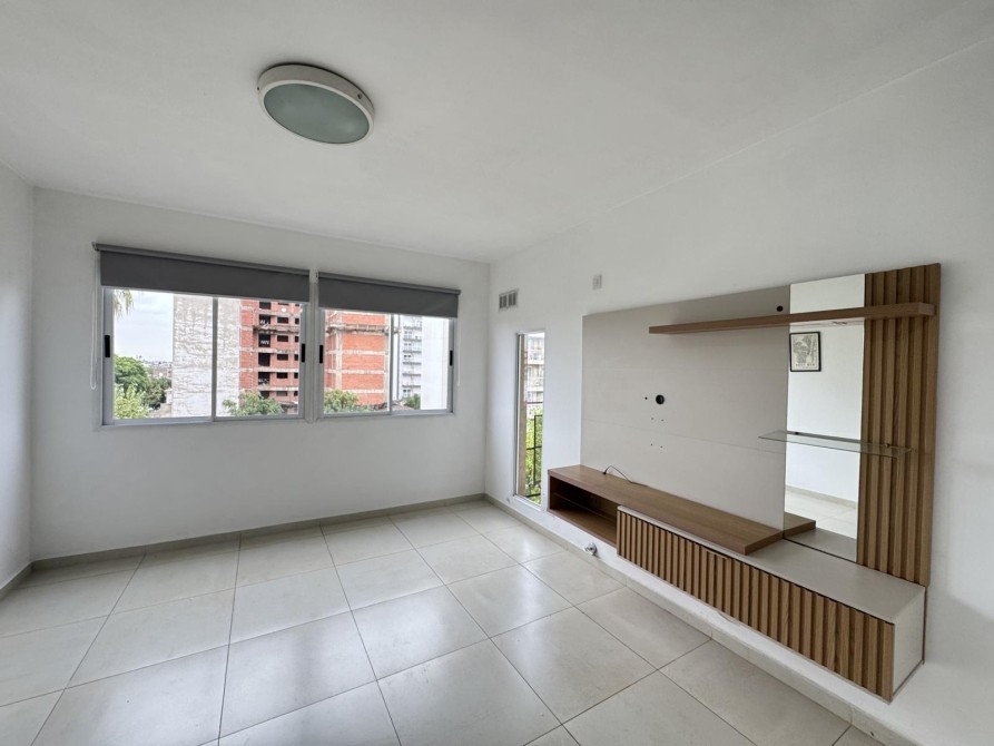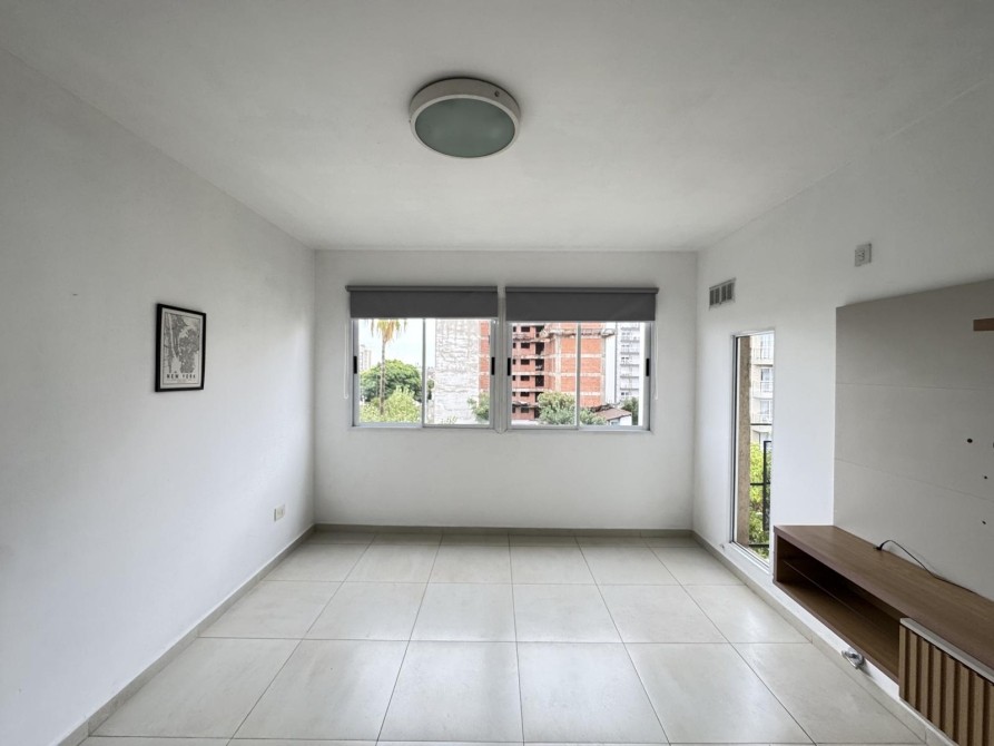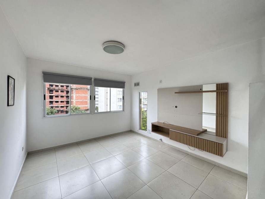 Hermoso departamento de 2 ambientes, súper luminoso y con una distribución muy cómoda. Cuenta con cocina semi integrada con barra desayunadora, ideal para aprovechar el espacio y sumar practicidad. El living comedor tiene vista al frente y excelente entrada de luz natural. A través de un hall distribuidor se accede a un baño completo moderno con ducha. El dormitorio posee placard con cajonera e interiores completos y salida a un pequeño balcón al frente, también con vista a la calle.