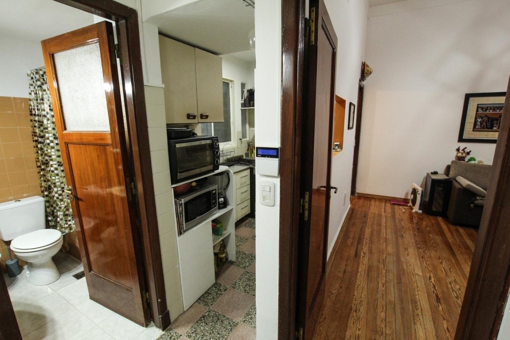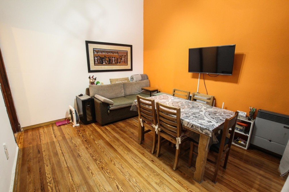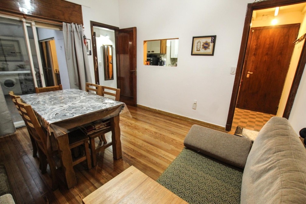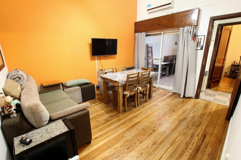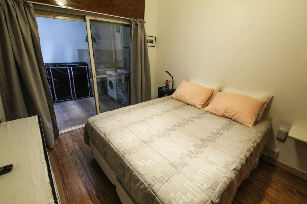 Desde el living se accede a un patio propio con lavadero techado y techo rebatible, generando un espacio versátil, luminoso y aprovechable durante todo el año. El dormitorio, de buenas dimensiones y con pisos de pinotea en excelente estado, también cuenta con salida al patio, aportando ventilación cruzada y luz natural.