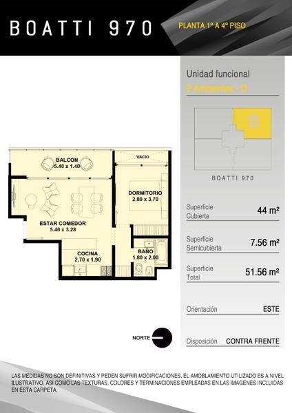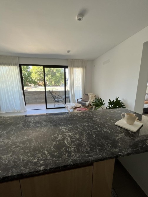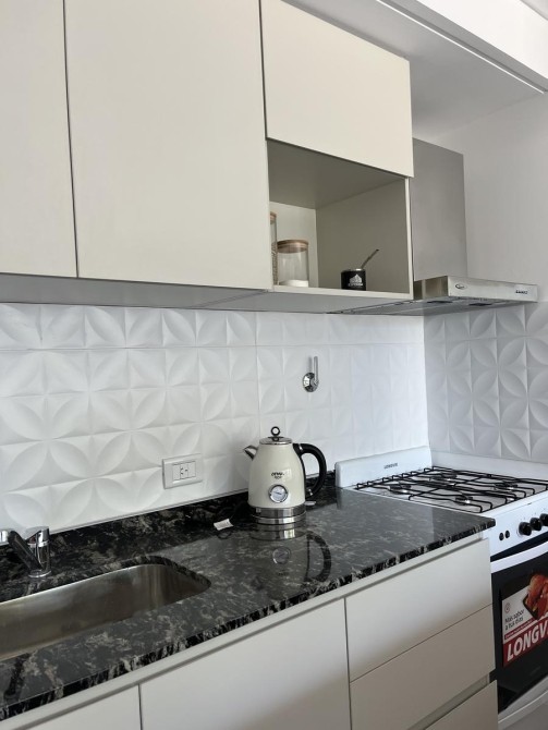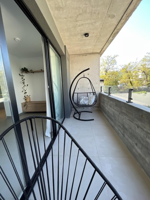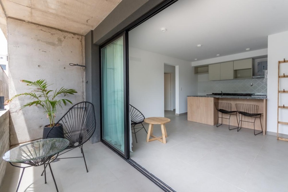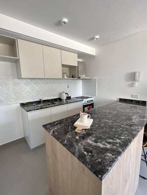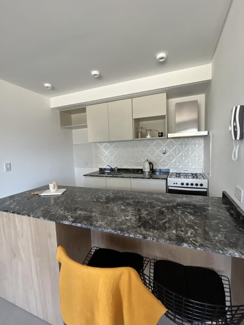 Se ingresa por estar-comedor, cocina integrada, con muebles bajo mesada y alacena, con artefacto de cocina de cuatro hornallas. Salida a amplio balcón. Dormitorio con placard integral y piso de cerámico. Baño completo con bañera (incluye inodoro con deposito exterior, bidé, bañera y vanitory).