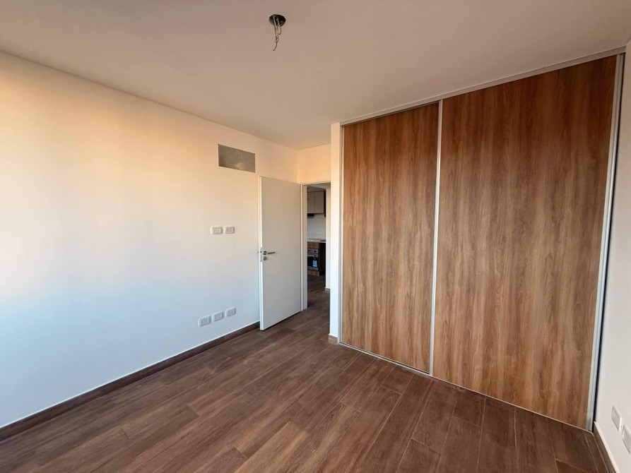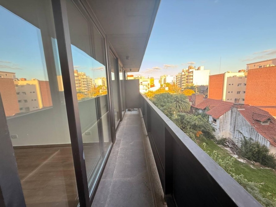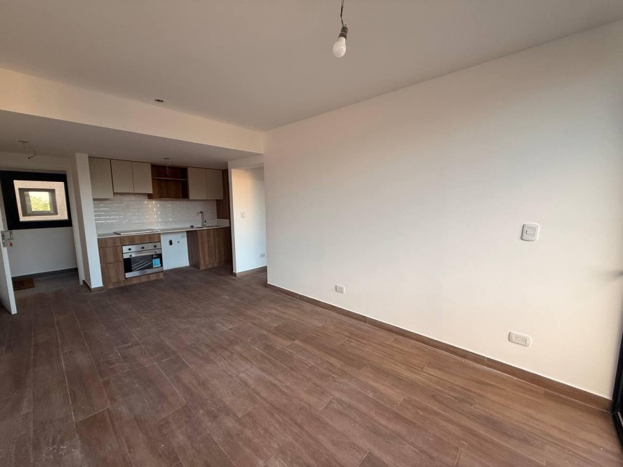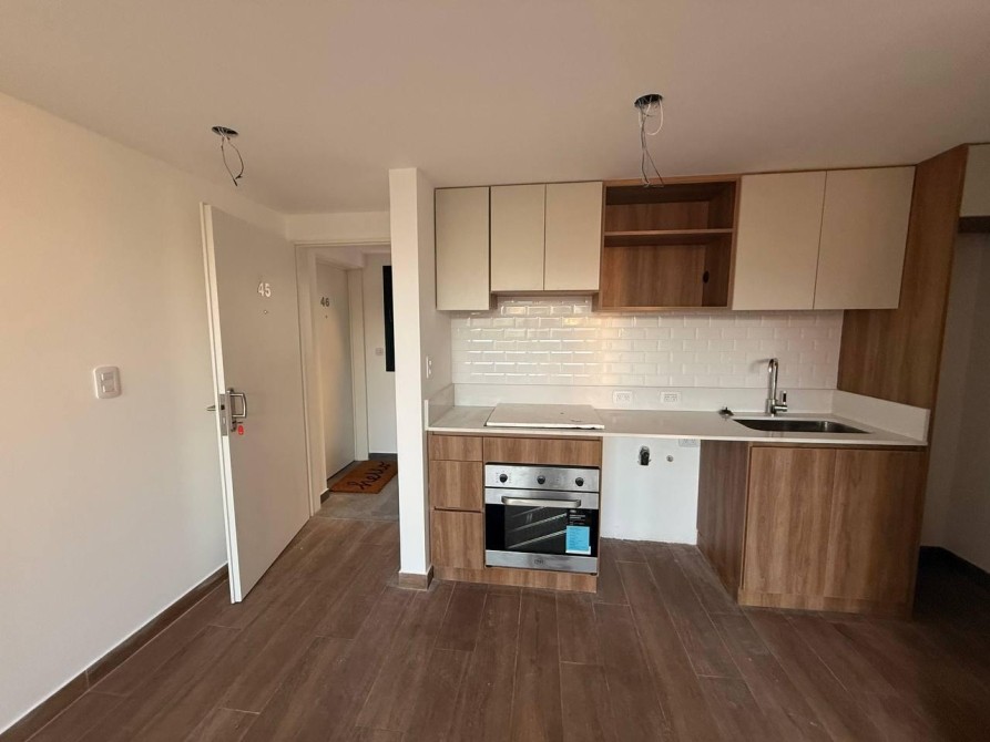 El living-comedor  con aire acondicionado , integrado con una moderna Cocina Americana, se extiende hacia un amplio balcón corrido, ideal para disfrutar de momentos al aire libre. El dormitorio cuenta con un placard con frente e interiores proporcionando un espacio de almacenamiento eficiente y aire acondicionado.  El baño completo, equipado con artefactos de la reconocida marca Ferrum línea Bari o similar y griferías Piazza, asegura calidad y funcionalidad.