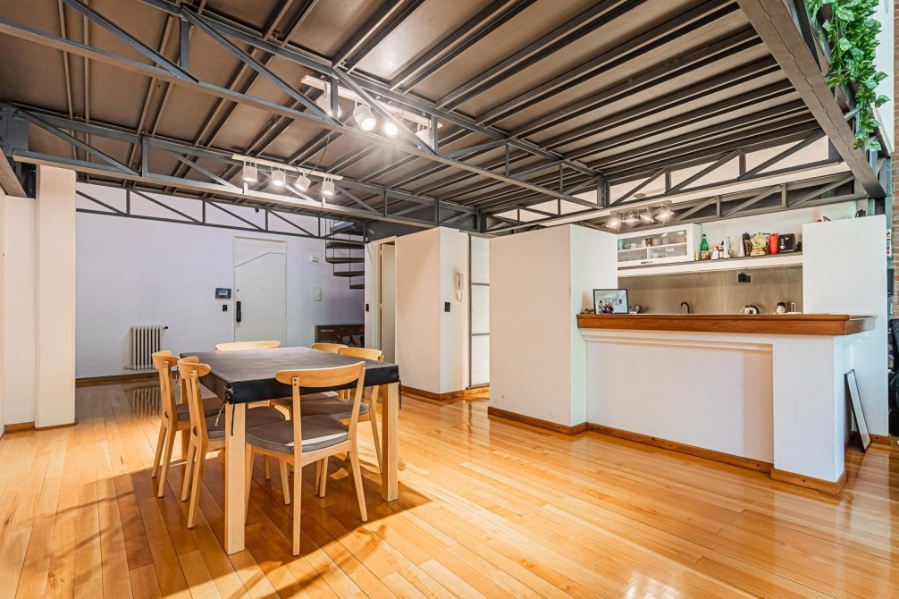 En planta baja se encuentra un amplio living-comedor de generosas dimensiones, cocina integrada con barra, toilette de recepción y espacios definidos pero abiertos que mantienen el espíritu loft.