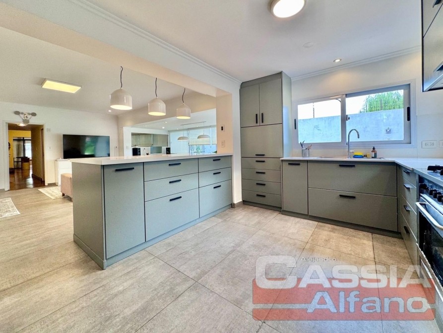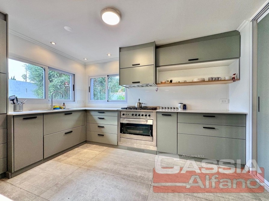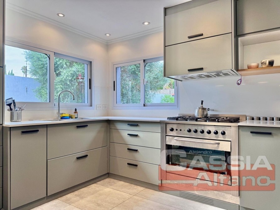 COCINA equipada completa " A NUEVO"con amoblamientos de bajo y sobre mesada, con pasaplatos, bacha en acero inoxidable y griferias completas PRIMERA CALIDAD, espacio de guardado. Todos los dormitorios con placard, principal en SUIT con vestidor, muebles de primera a medida, impecable estado! Hogar con tiraje natural.