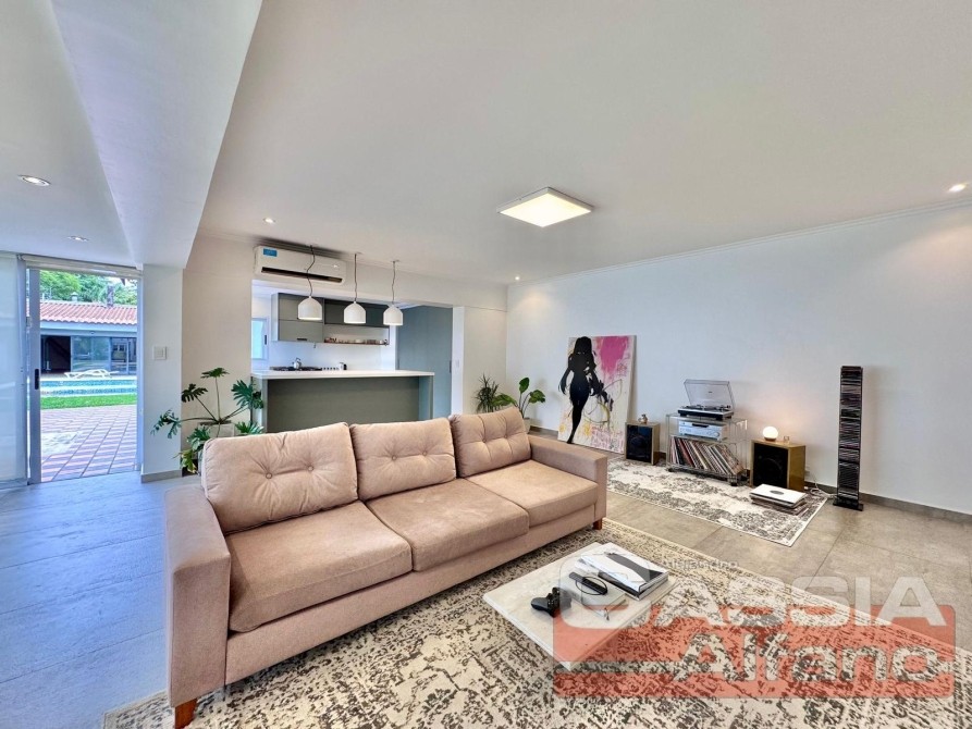 4 DORMITORIOS EL PPAL. EN SUIT, UN ESCRITORIO/OFFICE, LIVING AMPLIO CON HOGAR Y BOW WINDOW, SALA DE ESTAR SEGUNDO LIVING, GALERÍA LATERAL CON PATIO, FONDO LIBRE PARQUIZADO CON PISCINA ESPEJO DE AGUA DE 5 X 8 APROXIM, BAÑO DE SERVICIO, PARRILLA Y QUINCHO CERRADO CON COCINA EQUIPADA, ALTILLOS Y ESPACIO GIMNASIO, LAVADERO Y BAÑOS DE SERVICIO, DIGNA DE VISITAR.