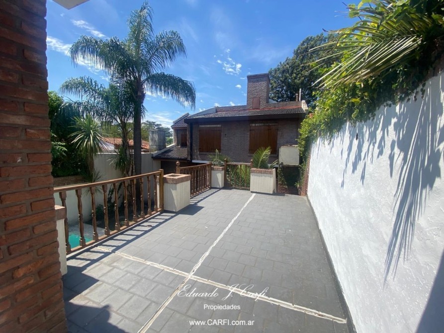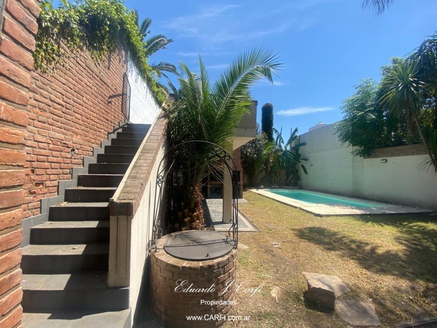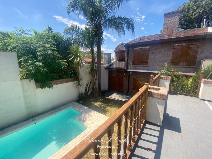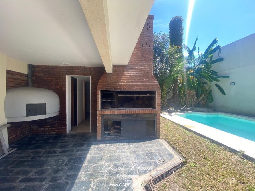 El exterior de la casa no se queda atrás, con un hermoso jardín, una piscina y un patio ideal para reuniones al aire libre. La propiedad también cuenta con una parrilla techada, perfecta para asados en cualquier época del año. Para mayor comodidad, dispone de 2 cocheras cubiertas, asegurando estacionamiento seguro.
