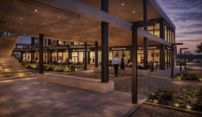 Con una arquitectura moderna de doble planta, paseos peatonales, terrazas y galerías, el proyecto ofrece 11 locales comerciales con superficies desde 90m² hasta 180m², más de 1.900m² cubiertos y 200m² semicubiertos, estacionamiento propio y expensas bajas gracias a su diseño eficiente.