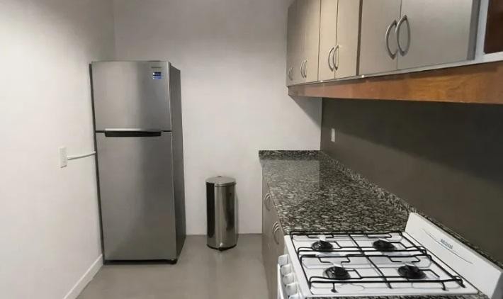 Cocina independiente totalmente equipada, con muebles bajo y sobre mesada