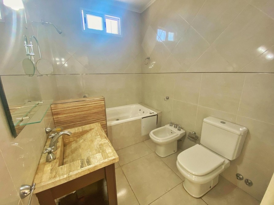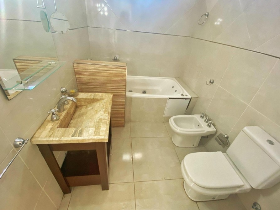 - Baño completo con lavatory, inodoro, bidet y bañera con ducha y mampara.