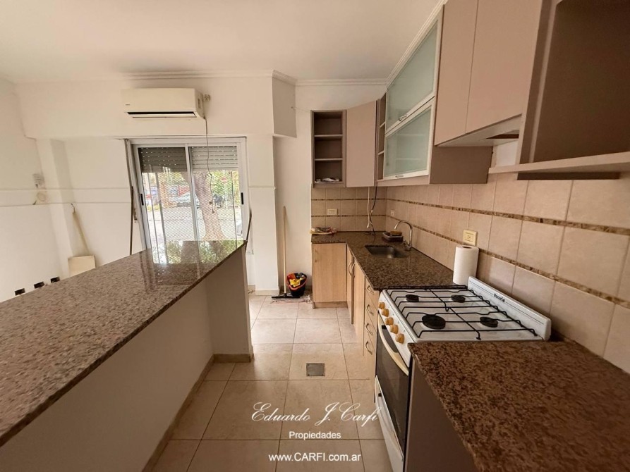 Con una superficie cubierta de 35 m2, el departamento cuenta con una suite equipada con un práctico armario, un baño completo y dos ambientes principales: una cocina funcional y un acogedor living comedor. La calefacción por gas y aire acondicionado individual aseguran confort durante todo el año, mientras que las persianas proporcionan privacidad y control de luz.