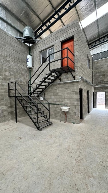 El galpón cuenta con un cerdo de pared a 3 mts de altura con portón automatizado de 6 mts. Cortina de entrada al galpón de 5.50 x 5 mts y una en el fondo de 3.50 x 3 mts. Puerta de salida con barra anti-pánico. Oficina 4 x 3 mts en PB, 2 baños completos con ducha. Oficina 6 x 3 en PA.