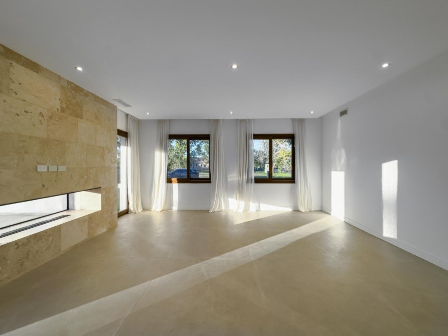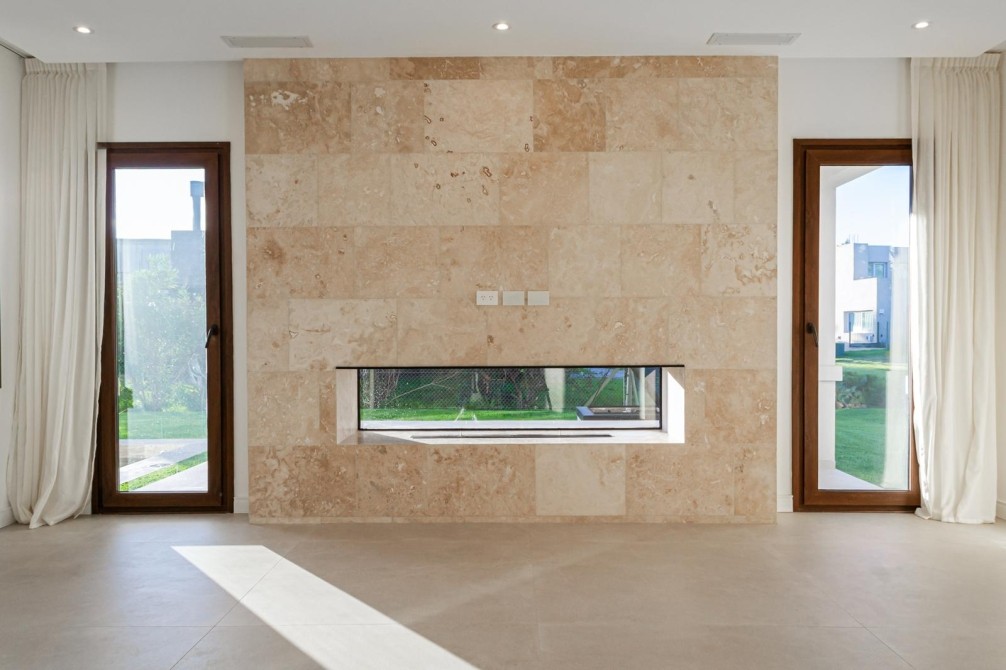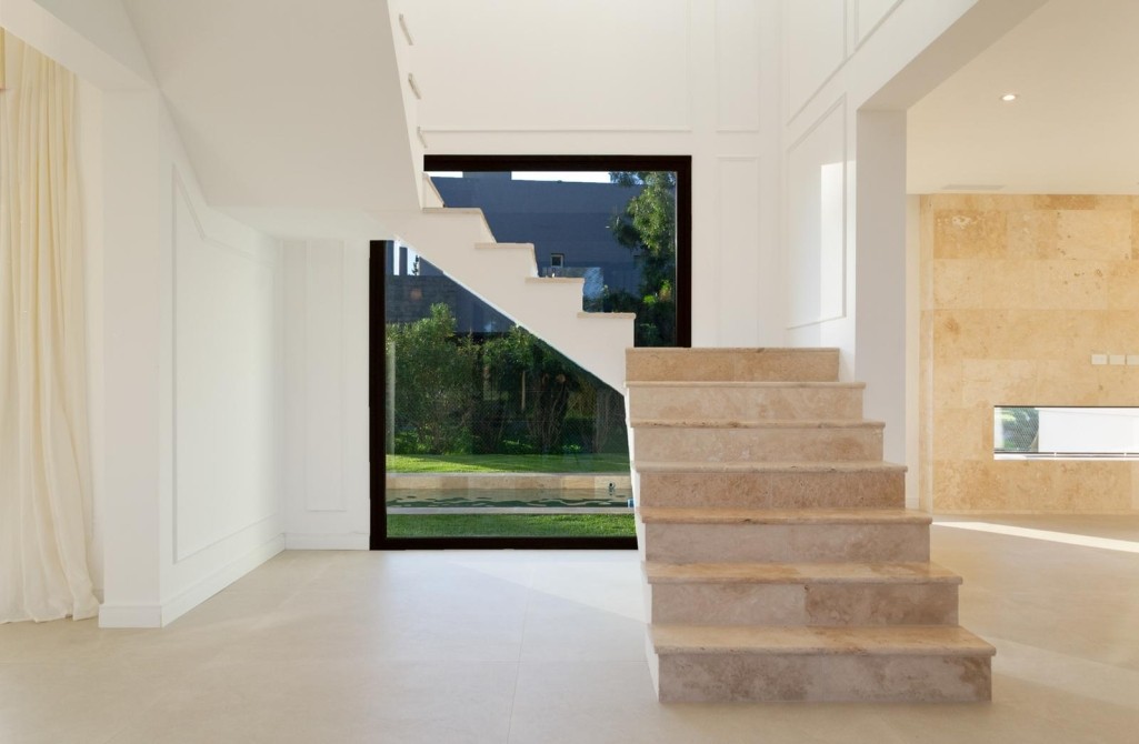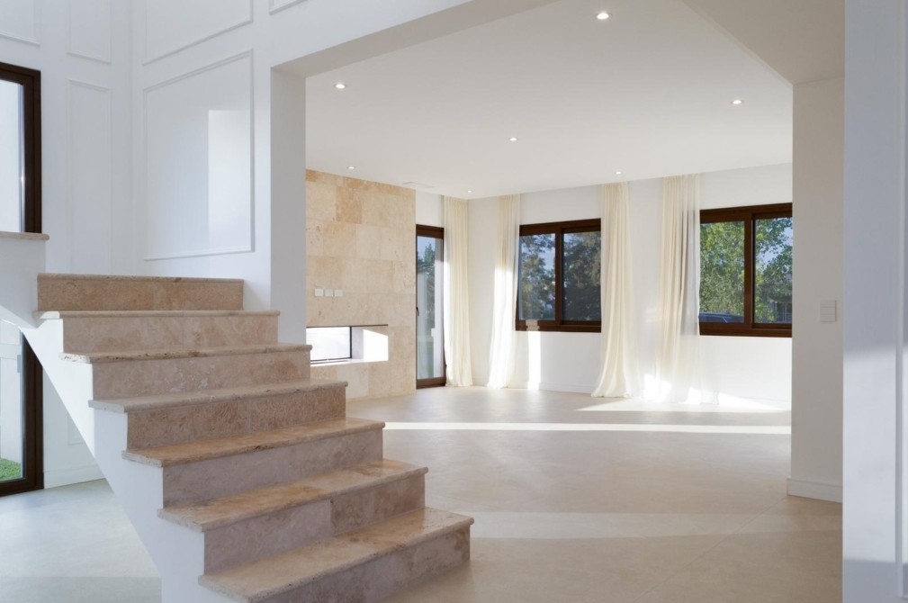 Solados en travertino y porcellanato de gran tamaño