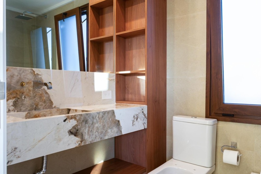 En planta alta se desarrollan dos cómodas suites con baño completo y vestidor, y una destacada master suite de generosas dimensiones con baño compartimentado, bañera, jacuzzi, vestidor y elegantes pisos de mármol travertino.