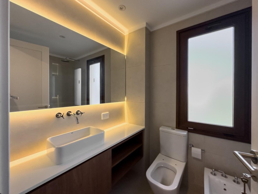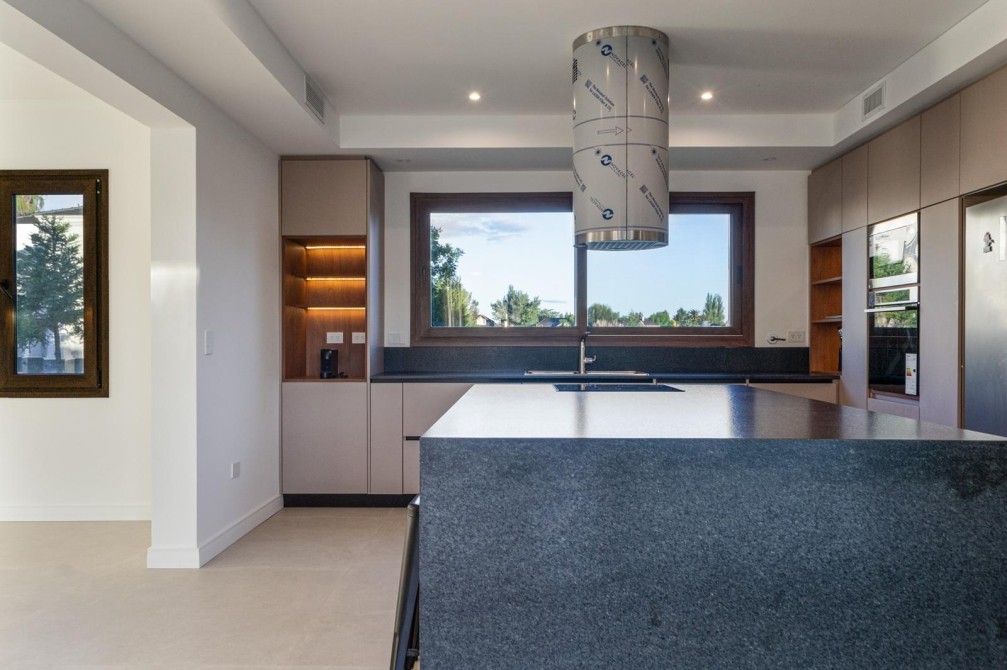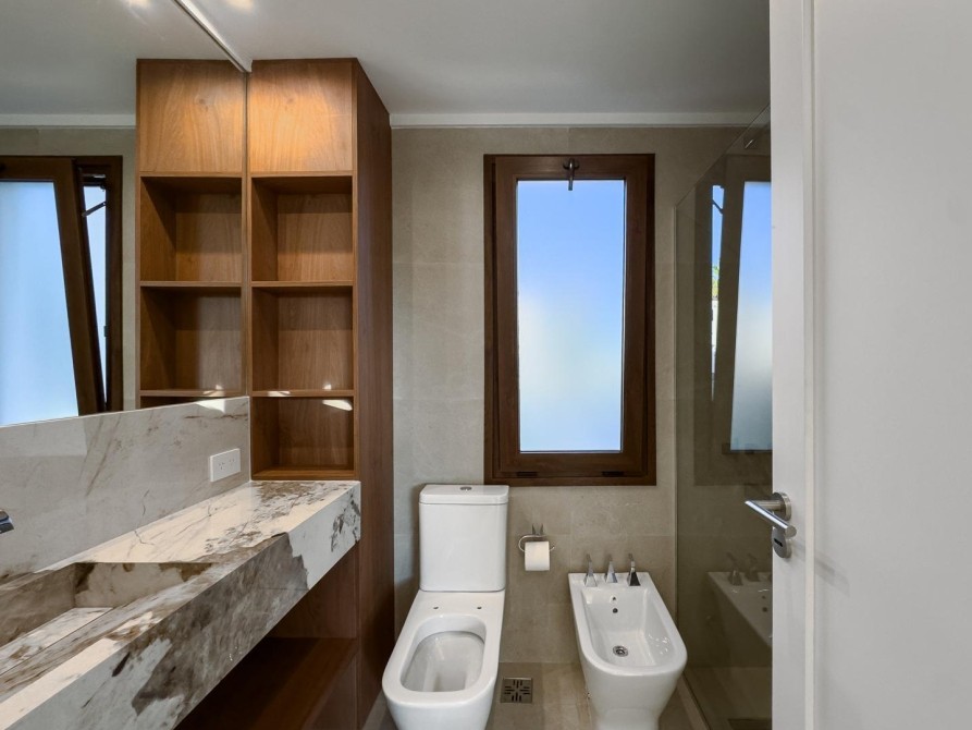 En el exterior la propiedad ofrece una gran galería cubierta con parrilla y un living exterior, jardín totalmente parquizado con sistema de riego automático y piscina revestida en mármol travertino, generando un entorno ideal para disfrutar todo el año.