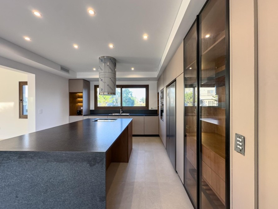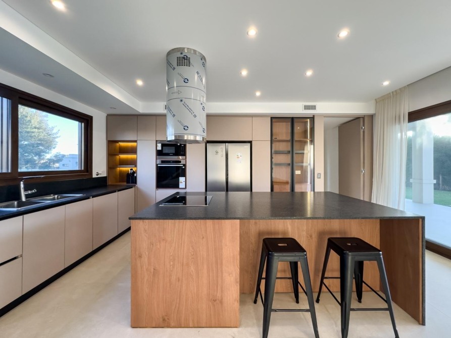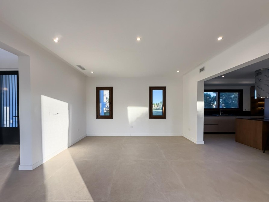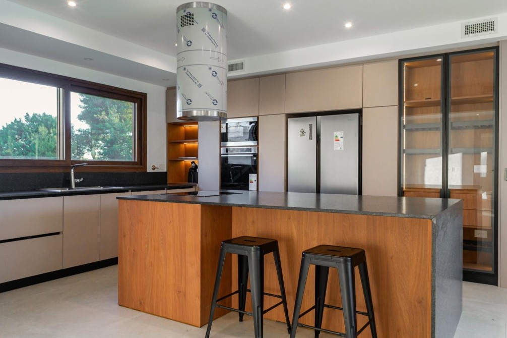 En planta baja cuenta con una gran cocina con comedor diario independiente, ideal para el uso cotidiano, amplio living con moderno hogar a bioetanol, comedor formal totalmente separado, toilette de recepción, dependencia de servicio con acceso independiente, lavadero con despensa y cochera cerrada para dos vehículos grandes con conexión directa al sector de servicio.