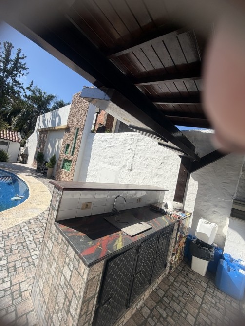 de natación con su bomba de filtrado. Con bar playero techado, con barra de madera. Excelente ambientación, con bancos
