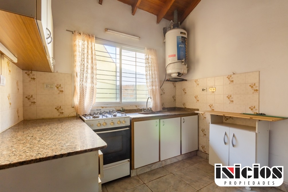La vivienda cuenta con una cocina integrada al comedor diario, con techo alto de madera a la vista que aporta calidez y una excelente ventilación natural.