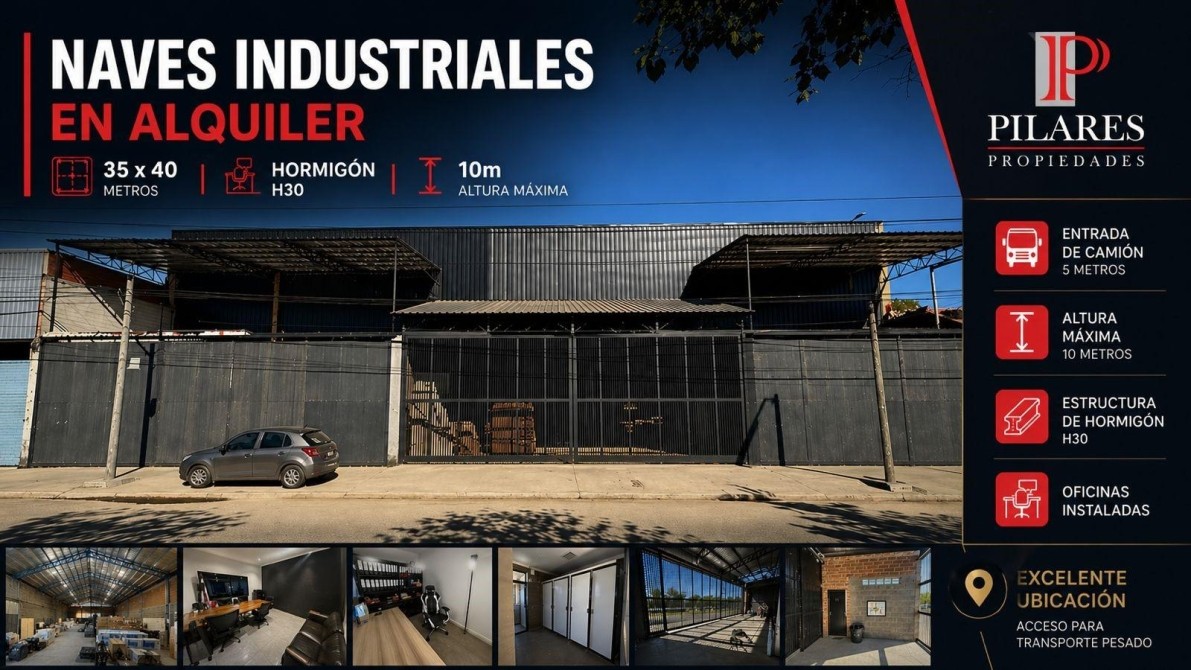 Avenida Juan Domingo Perón N*3700 Lomas de Zamora Alquiler u$s 11.000.-Complejo de naves industriales con excelente presencia, funcionalidad y estructura. Desarrollado sobre un lote de 35 metros de frente por 40 metros de fondo, este conjunto ofrece una solución ideal para logística, depósito o actividad industrial. Las naves están construidas con estructura de hormigón H30, garantizando alta resistencia y durabilidad para uso intensivo.