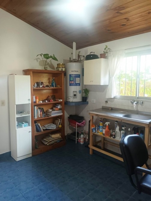 El baño está completamente instalado, disponiendo de una bañera y también con piso cerámico. Incluye un espacio versátil que puede ser utilizado como dormitorio o escritorio. La cocina, de tamaño reducido pero funcional, cuenta con muebles bajo y sobre mesada, también con piso cerámico.