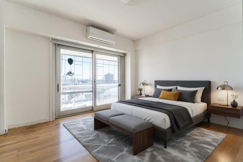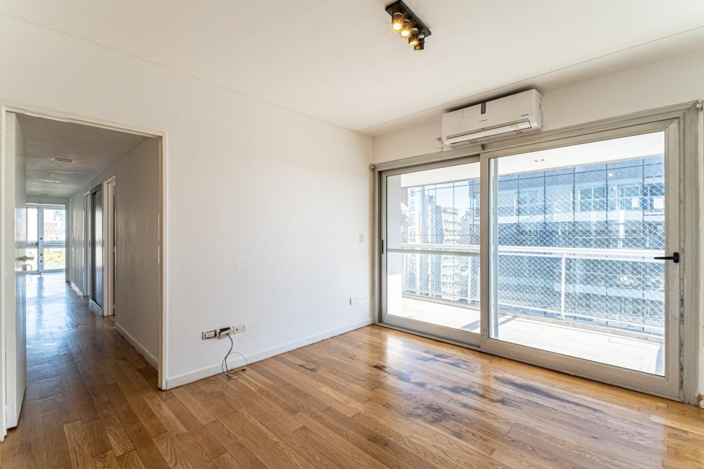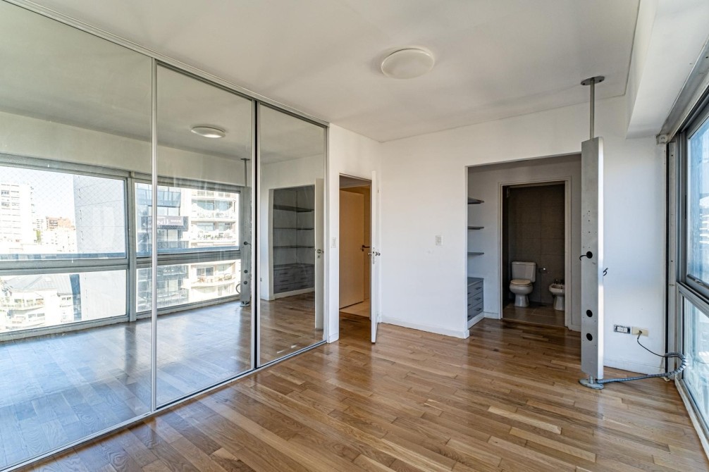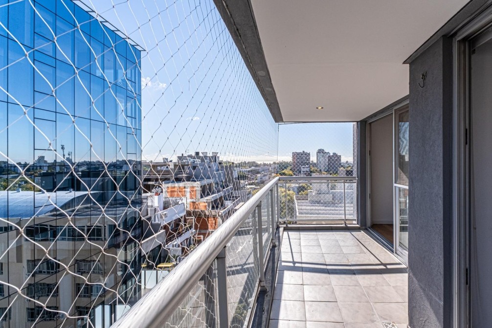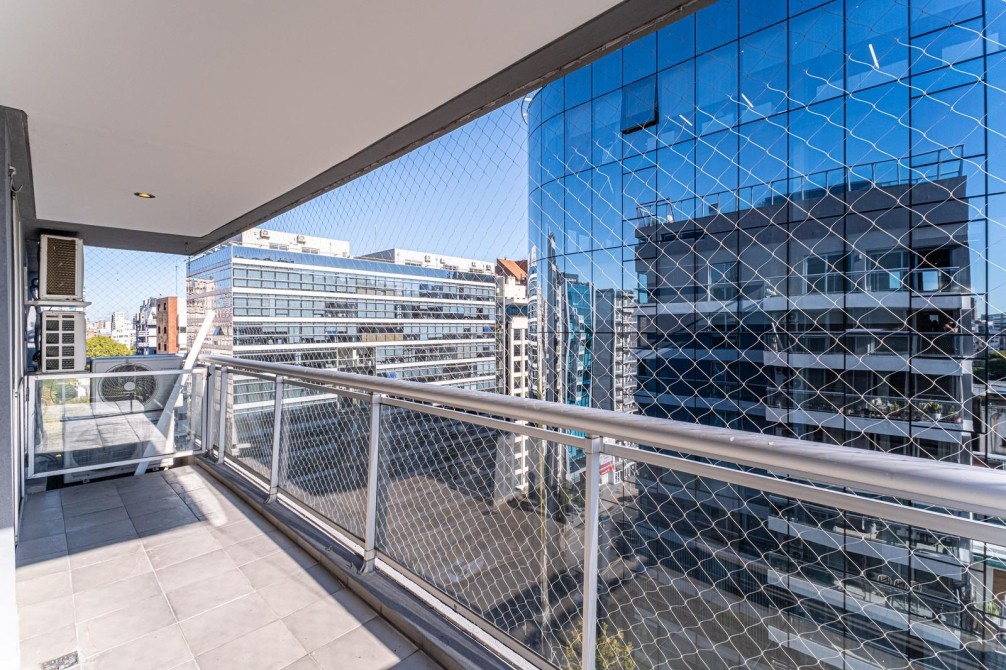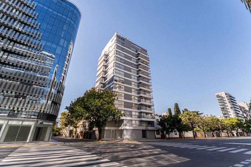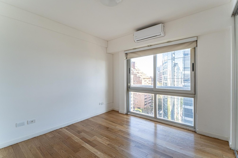 Entre las amenidades se incluye una cochera cubierta fija, seguridad las 24 horas, ascensor con accesibilidad para movilidad reducida, gimnasio, pileta, parrilla y SUM. La calefacción es central, complementada con aire acondicionado individual y losa radiante general.