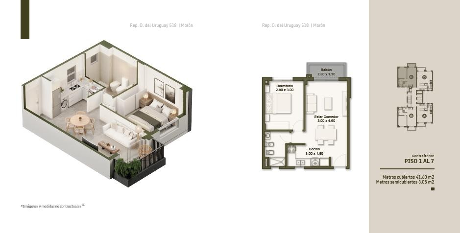 Departamento de dos ambientes dentro del emprendimiento de República Oriental del Uruguay 518, Morón, ubicado en una zona estratégica, consolidada y con excelente conectividad, a pasos de comercios, servicios, colegios y con rápido acceso a calles principales y transporte público.